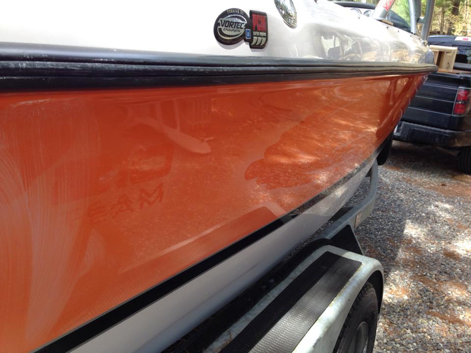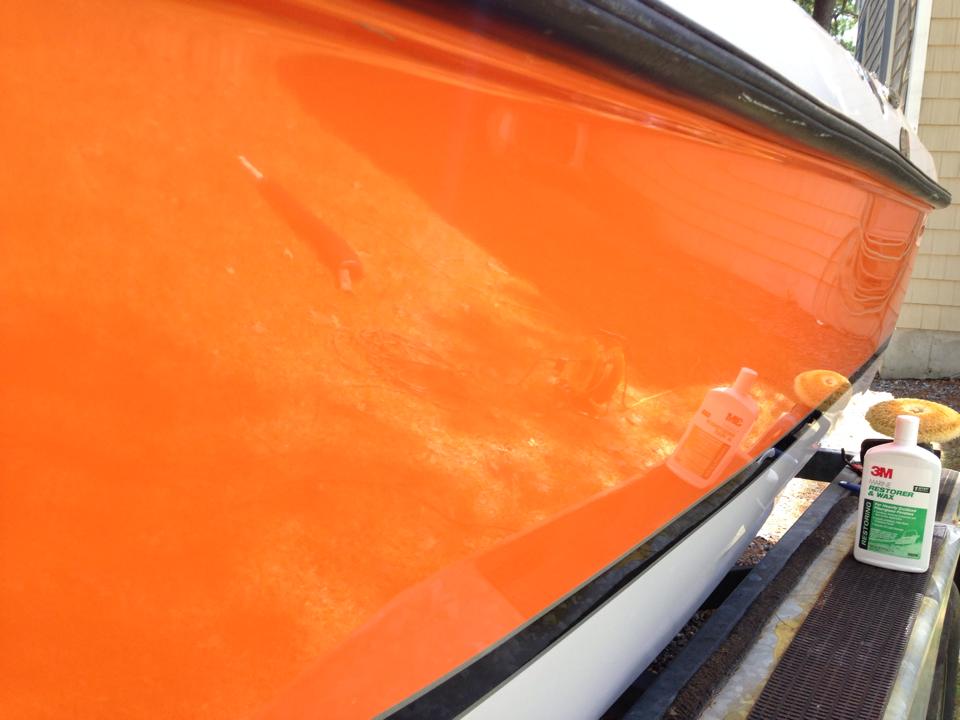 The side was pretty faded. I did a restore with a great 3M color restore product and a rotary buffer. It came out great. I'll have to keep up with the wax to make sure it stays shiny.