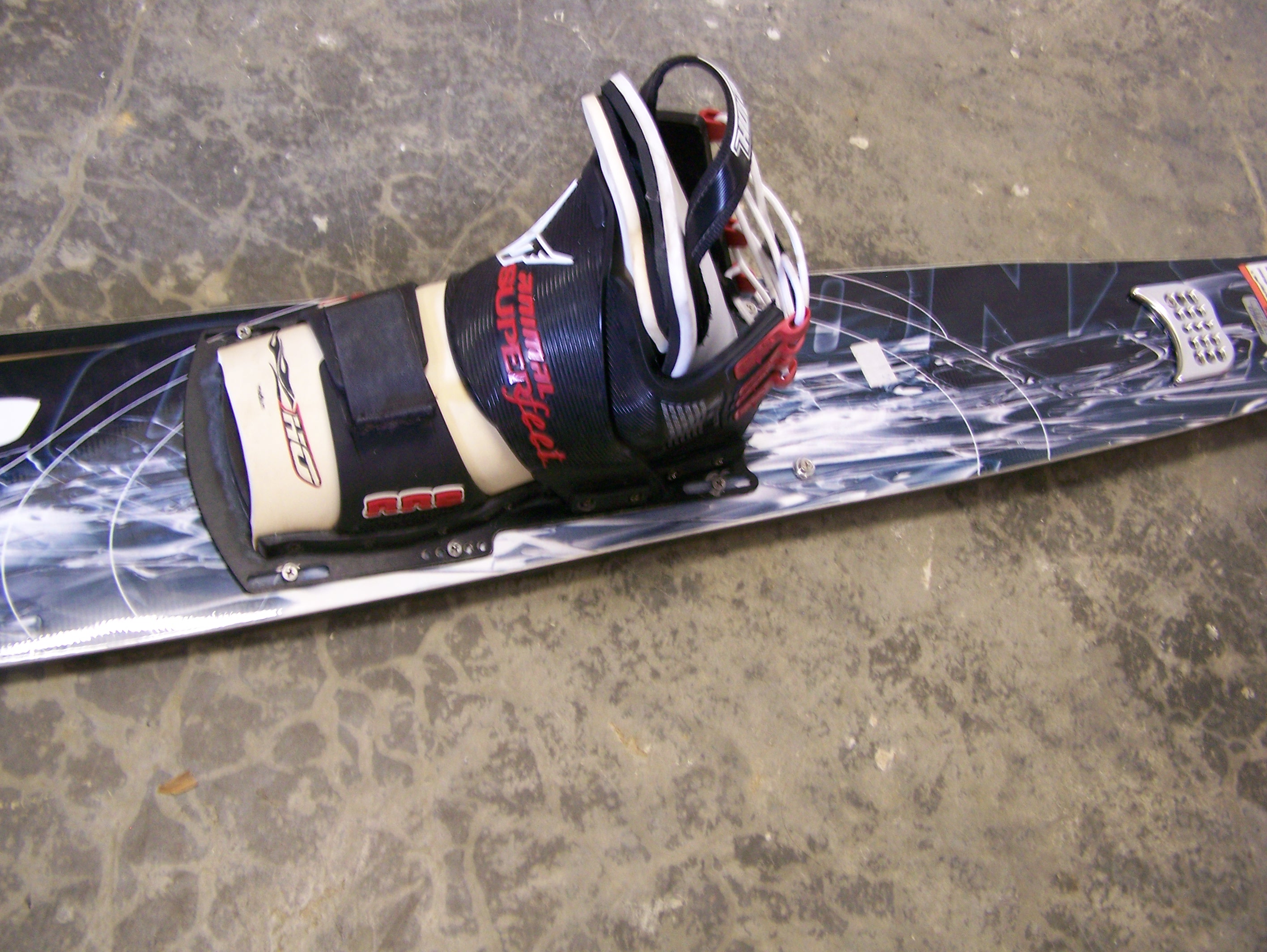 used for only one season,still only been skied on a dozen times or so and mainly my father used it.i bought it thinking we could share it....but thats not the case,i've got a few lbs on him so i bought a 69.really don't need it since he only goes a few times a year with me anyways.in excellent shape,no scuffs or bangs on it,always stored indoors after every use.also comes with a ho animal front (medium fits 9-10.5).i wear a 11 and it fits me but its pretty snug.would like to get $200,would consider selling as blank also.thanks-cody 828-301-6111 asheville n.c.