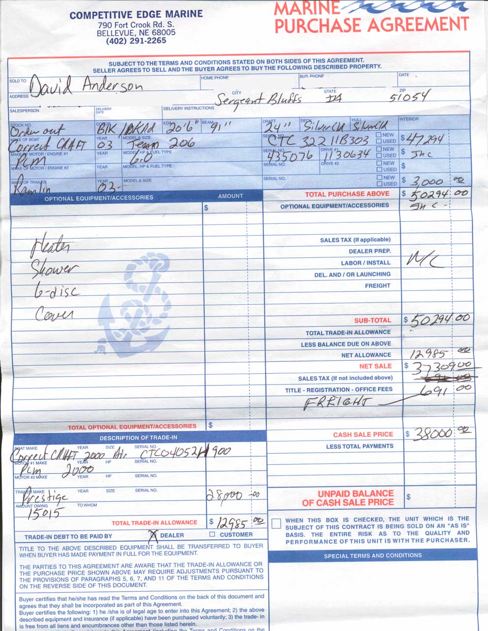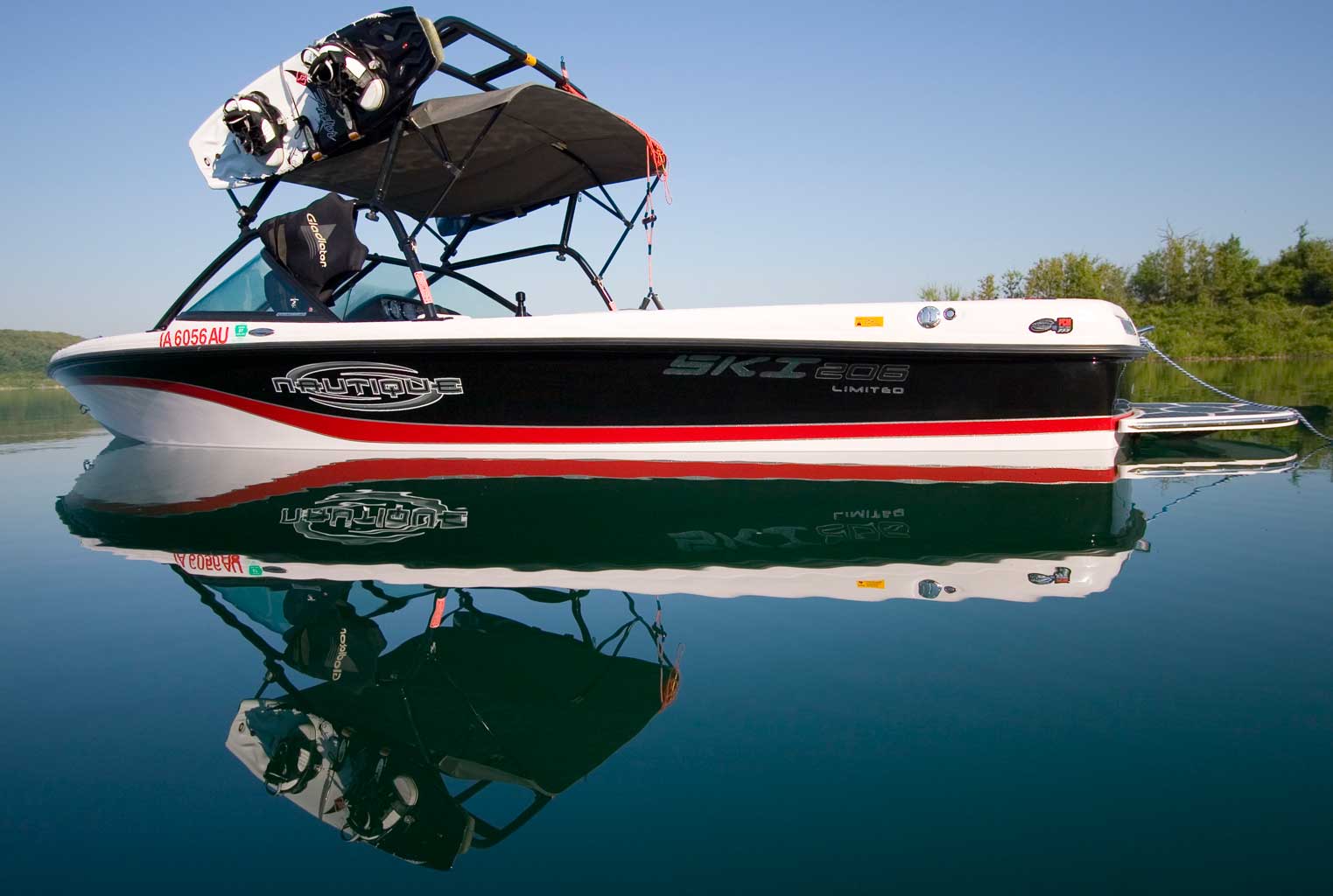 I purchased this boat new in 2003. I still have all the paper work from the dealer. It is a team edition with the tanks deleted so there is room in the trunk. I use two fat sacs for wakeboarding and it throws a nice wake. Great ski wake! The 375HP ZR6 is great for barefooting. No problem holding 45 MPH. Some other facts: