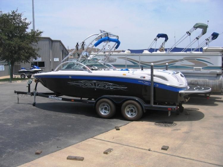 Powered by a PCM 5.7L inboard. Some features and options include: snap-in carpet, computerized bilge pump, EZ oil drain system, Inverta-flo muffler, USA Water Ski Approached Tournament Towboat, 12-Volt receptacles, floor locker storage, jump seat, pull-out cleats, stainless steel cup holders, courtesy lights, under bow storage compartments, walk-thru bow seating, walk-thru windshield, dual batteries w/safety switch, air graphics, air/water temp, custom steering wheel w/throttle knob, depth finder PerfectPass, factory ballast tanks, Flight Control Tower w/Flight Clips, rear water sports pylon, audio input jacks (MP3, portable DVD, digital camera & audio/video capabilities), bow speakers, Clarion stereo system and a Magnum tandem axle trailer.