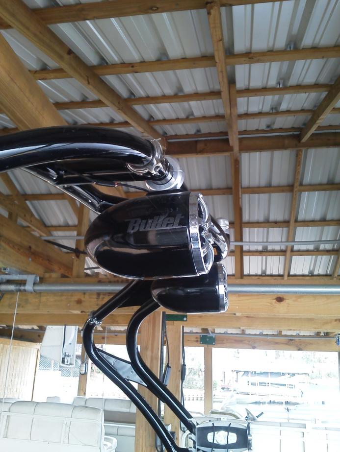 Pair of Bullet HLCD 770 tower speaker black cans with chrome grills. Clamps sold with speakers are for FCT3 tower. Speakers are in perfect shape only used the last half of the summer. Reason for selling is I would like to go a diffferent direction with the stereo. 650.00 plus shipping obo. Can take more pics if needed.