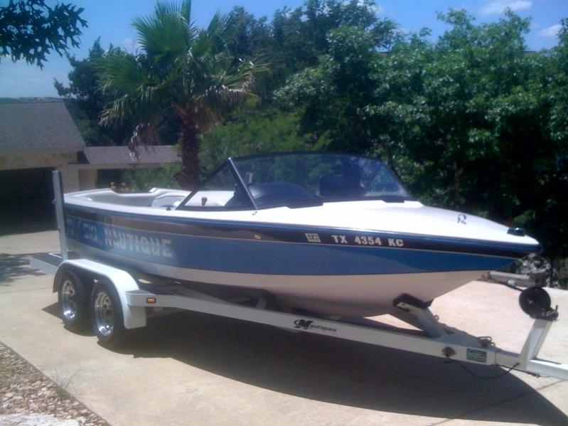 Well maintained 1993 Ski Nautique with TBFI engine from 1995 SN with approximately 600 hrs. Runs flawlessly. Interior is at least an 8 out of 10 and needs nothing. Boat was fully restored and upgraded in 2006. Comes with custom Rankin Cover , matching bimini, all records including owners manual. Just installed new sound system with amp. Original trailer, shown, will need to be replaced as some point. Looking to upgrade, open bow for the twins, otherwise I'll keep her. Just completed 6 month service: oil, fuel filter, impeller, transmission fluid, packing, et al. $11,500. Don 512.415.8880