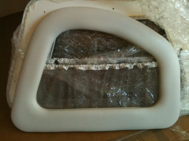 2. and 3. I also have brand new pads that mount on the side of the driver's console and the side of the passenger's console. They are the pads that you would bump into as you walk into the bow of the boat. They are completely assembled and ready for installation and even include new "netting". These are white (aka: silver cloud, I think?)
