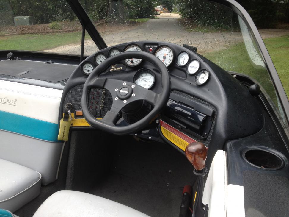 97 ski nautique. Teal. Gt-40 h.o. Fuel injected 310 hp. 600 hours. Always ran Mobil 1. Trailer was restored in 2010 (stripped, painted, new wood and carpet). All gauges work and are crystal clear (even the clock). Throttle and shift cables are smooth as new. Has alpine cd player with 10" alpine sub tucked away in closed bow. Comes with Bimini top and boat cover. I have all the factory service and owner manuals. Always stored under shelter and cover. Boat is in N.C.