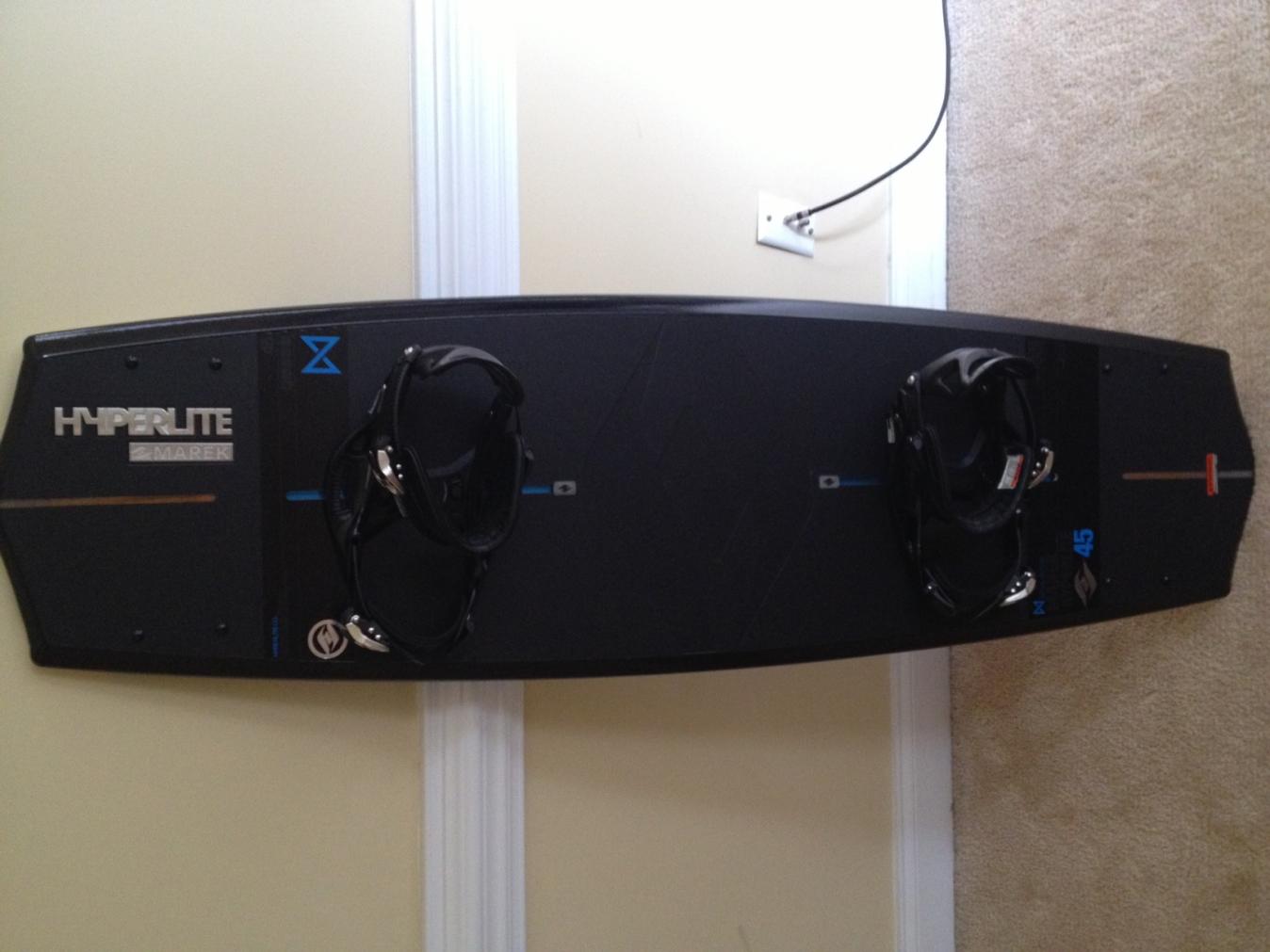 2013 Hyperlite Marek Nova core 145cm board: Ridden twice behind boat only (no rails, no cable, etc.). Selling to buy the 140cm version of this same board - love it, just too big for me (I am a smaller rider) so I'm going for the next size down. Board is in MINT condition (10 out of 10) as its always been stored in a board bag. Buy like new board for much less than brand new (MSRP is $740). Buyer pays shipping (board only, bindings not included). Thank you for viewing.