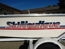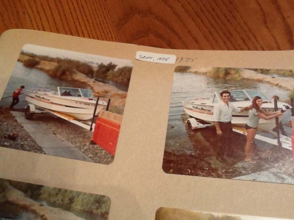 There are two very unique features on this boat: stars and stripes Ski Nautique lettering on the side and flames painted around rear air vents. The story I’ve been told is that there were two boats given these features at factory and one went to east coast, the other to west coast. This boat has been in California its whole life. For its first couple of years, the original ownerused it as tow boat for Santa Clara Ski Club and then it was sold to second owner where it’s been well cared for since then. The two older looking pictures above were taken in 1975 when the boat was launched for the very first time.