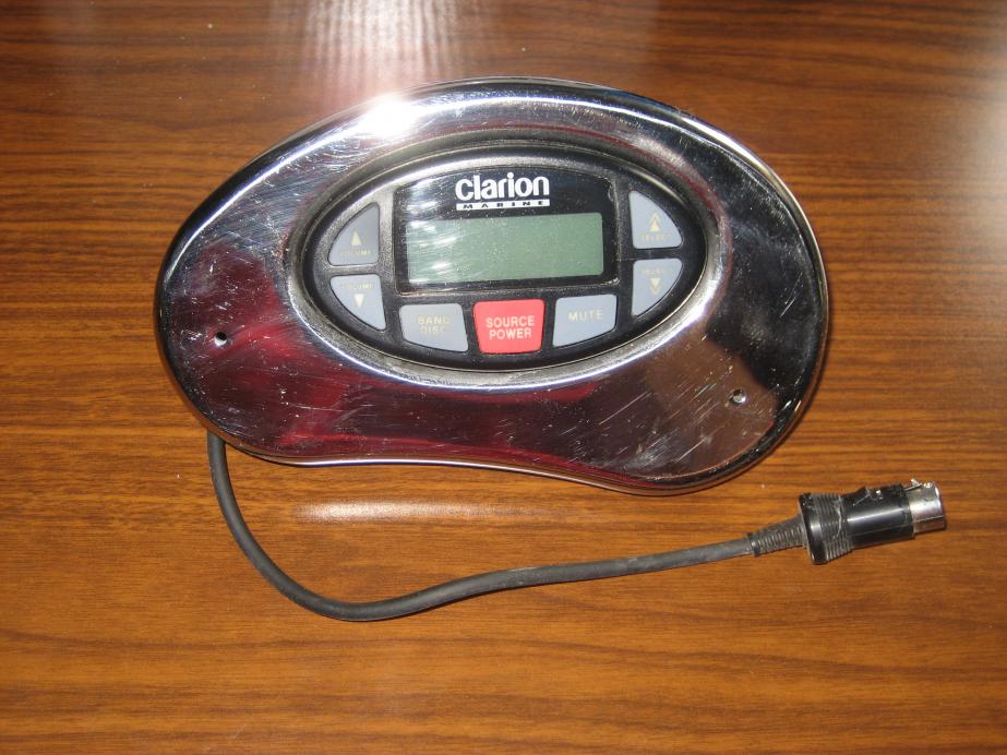 From my 2006 Nautique 220 - Garage kept Clarion CMD4 w/ oval remote and oval Nautique remote plate. Comes with 25' lead for remote. Everything was functional when I took it out of the boat. (Replaced with CMD6 for Apple/USB connectivity). Truth be told, I miss the direct Bass/Treble/Fade controls. Oh well.