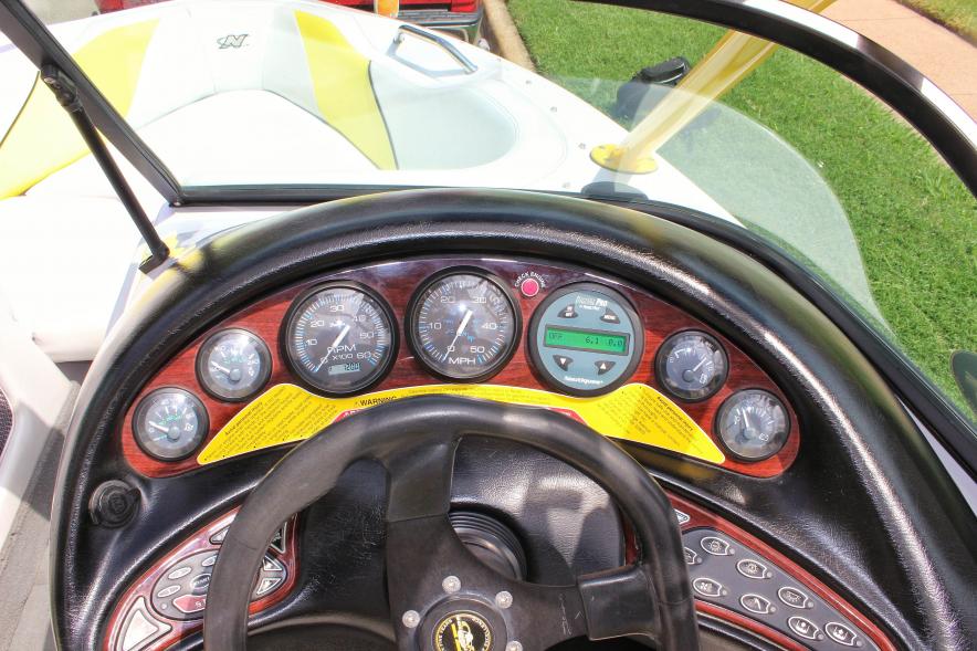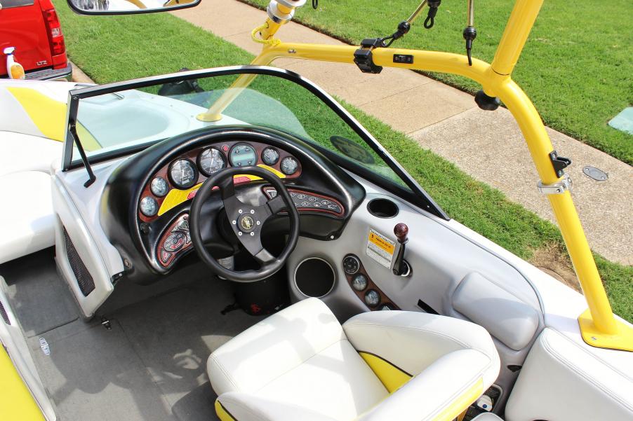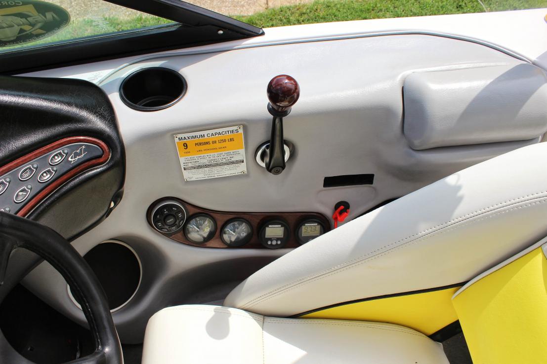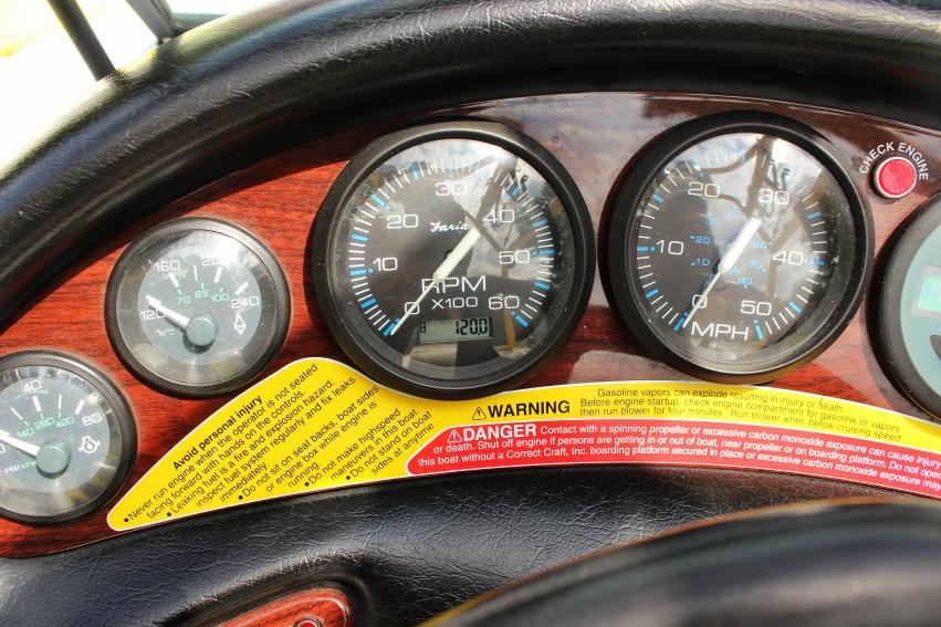 Boat is in great condition. Freshwater use only. I am the second owner and purchased the boat in 2006. Previous owner was meticulous as well. Boat has approximately 405 hours on it. The digital gauges went out at around 285 and we've replaced them with Faria tach and speedo. Current reading on the new gauges is 120. Boat has been stored inside or on a covered lift (1 summer) for its entire life.