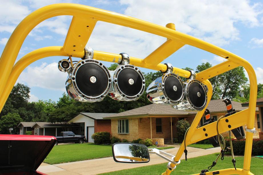 New Sony head unit with 8 speakers (4 tower) and sub-woofer mounted under dash on drivers side. Amp mounted on passenger side under dash.