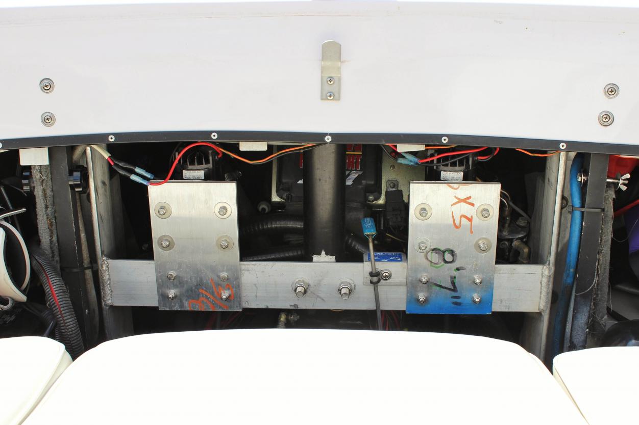 Updated ballast system including Johnson pumps, additional rear sacks (300 lbs) plus hard tanks, additional center sack (370 lbs), and additional front sack (250 lbs). All sacks are integrated in to the pump system. Johnson pumps were mounted between the rear seat and engine as shown in attached photo.