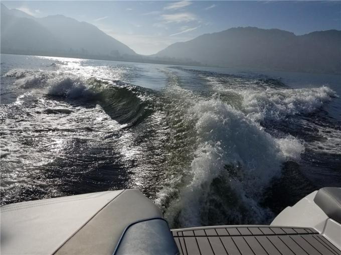 This boat has an awesome wakesurf wave, both goofy and regular.
