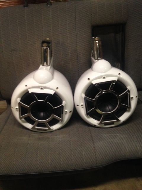 I Have 2 White Canister Wet Sound Rev 8s Speakers With Fixed Clamp System & Quick Disconnect Wiring Set Up These Were Working/ Playing Extremly Loud As Of 8/16/17 When They Were Removed Off Of My Boat. New Owner Was Trying To Save A Few Bucks On Boat Putchase So These Were Removed. These Will Work Great On Any Boat With A Tower A SxS Or Buggy/Jeep. Speakers Are Located In Cullman AL 35057 Can Meet Buyer Within Reason Or Will Ship On Buyers Dime Asking $900 For The Pair & Mounts (205)365-5739