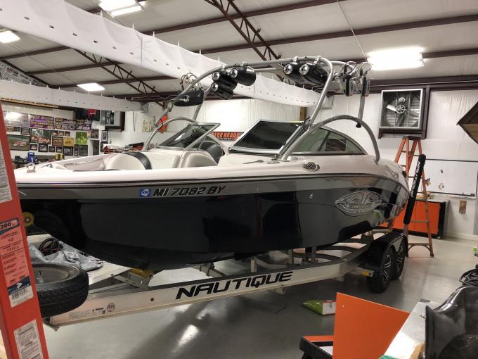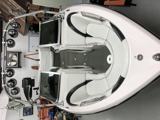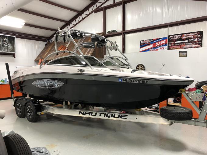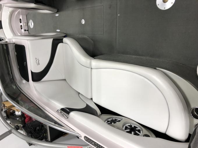 Black silver and white color scheme! 9.5 out of 10 from front to back. 6 JL 8.8 Towers, Polk interior speakers, JL amps, 2 Rockford Subs ($8500 in stereo this year). Comes with 2016 all aluminum trailer w/disc brakes and mag wheels. brand new tires new impeller, fresh engine service. A must see to appreciate pictures do not do this boat justice and it’s half the price of its nearest competition. 500hrs. Spare prop , upgraded zero off gps perfect pass, Black over the tower Bimini top. Adult owned, stays in climate control shop.