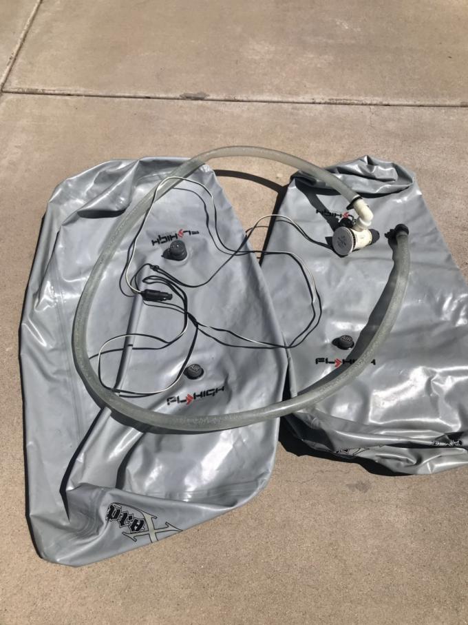 For Sale - Set of Fly High V Drive sacs and pump. Each sac holds about 400lbs. Includes all fittings and Attwood Tsunami 1200GPH pump. Pump cartridge replaced last year. $150.