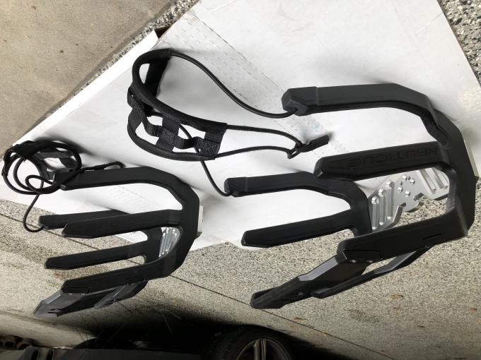 I upgraded my board racks to the Tritons, so I have these original Nautique branded board racks off my 2017 G23 to sell. Sold as a pair, includes the forks, strut, and bungee. One of the racks has been used less than 1 season, the other rack is 2 seasons old. Both have light wear, some minor scratches. The older of the 2 has some oxidation on the top side. Cosmetic only. Both are solid and fully functional.
