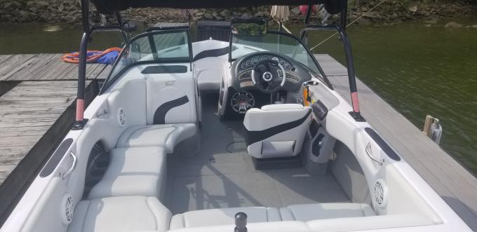 Boat was factory ordered with no ballast. I just installed a 3 bag setup with three reversible ballast kings. 750s in rear 500 under bow. I've filled them 3 times since install. Has polk 6x9 tower speakers, 10" sub under driver footwell. Has perfect pass. 2 batteries with8 switch. Fresh tune up, new belts, new water intake hoses and strainer. Full custom cover by angola canvas that has side skirts. All rear seat bases are new along with the rear hatch covers. All interior that is original is still in exceptional shape. Full buff was done last season and boat still shines great. Everything works as it should. Trailer is a ramlin single axle with brakes and 2 new tires with spare.