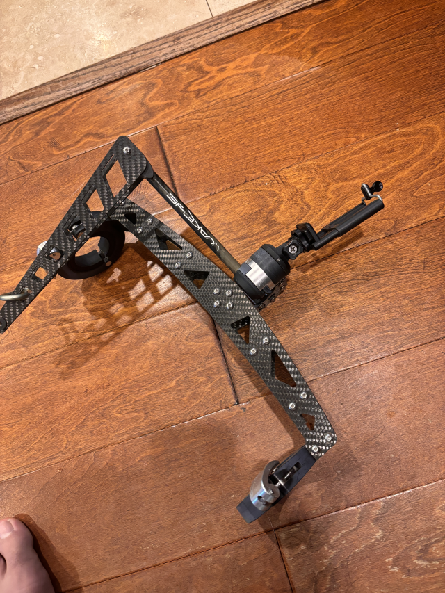 Wakeye camera mount. Mounts to a tubular tower and follows the rope. original MSRP was over $300. Made of carbon fiber components. It works, just old. Should fit 2.5" diameter towers and smaller. I used rubber pads to fill in the space to fit my 2" dia tower. May needs something similar to fit your application.