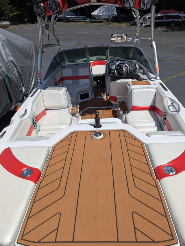 This boat was primarily used for Wake Surfing. I removed the factory Team Edition ballast and enhanced its wake-building capabilities by adding Fatsac 1100 bags to each of the rear lockers and a Fatsac 650 v-bag under the front seats.
