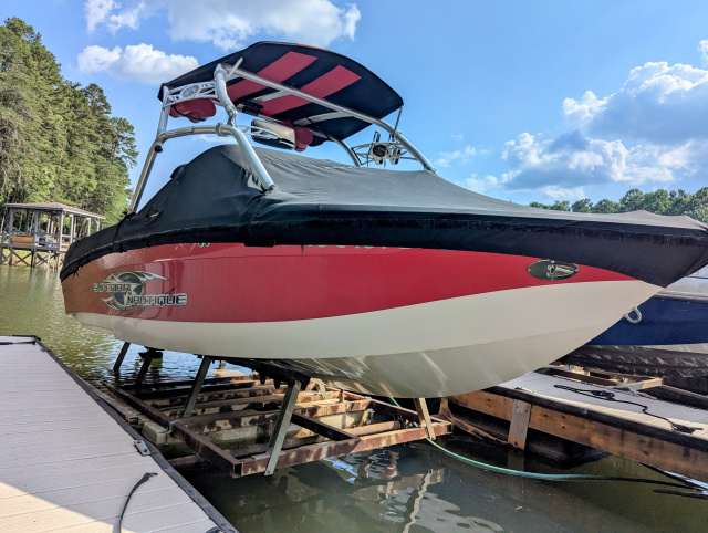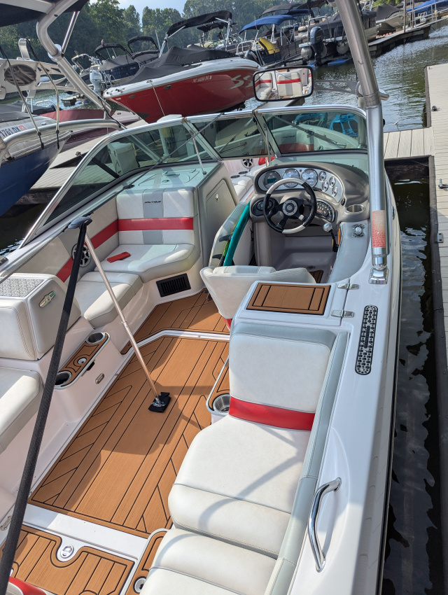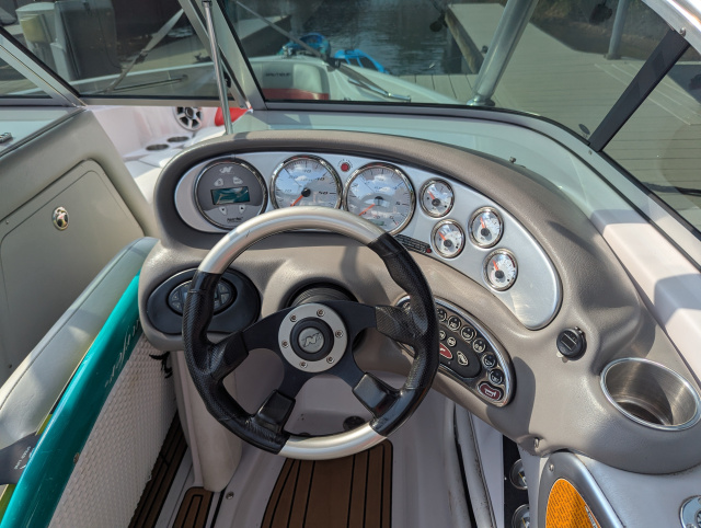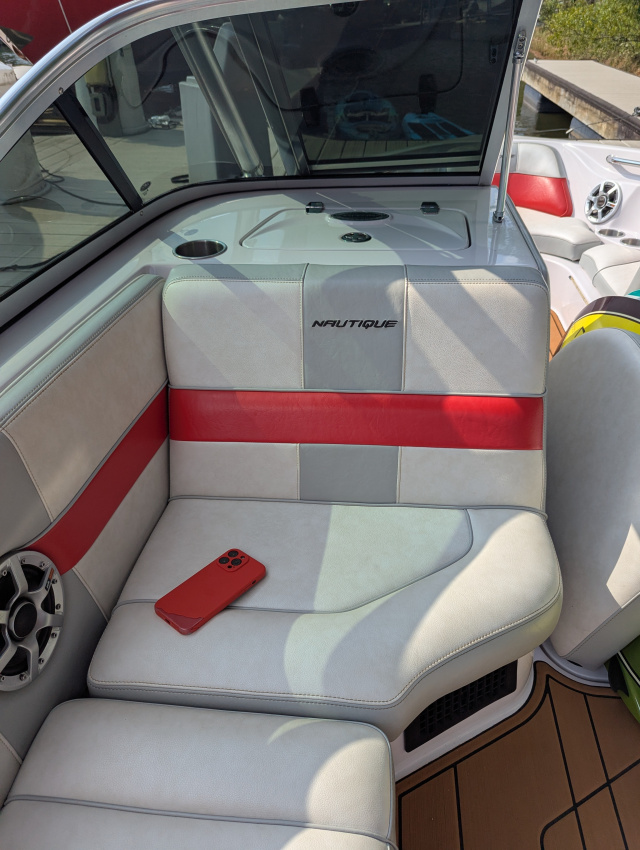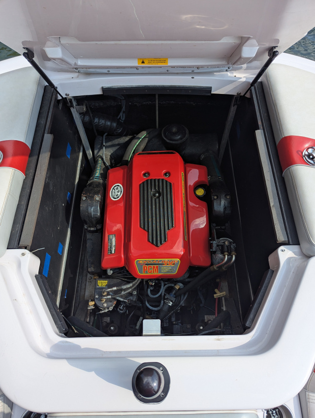 The boat is powered by a PCM 330 Excalibur 5.7L engine with over 700+ hours, which starts and runs smoothly. The V-drive, transmission, and prop all operate without issue. At the beginning of this season, I performed routine maintenance, including replacing the impeller, spark plugs, fuel filter, and all fluids. If you know anything about Nautiques this was the year they were testing the stronger v-drive which means it rotates differently from the normal and makes a large wake on the port side.