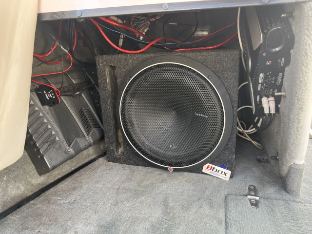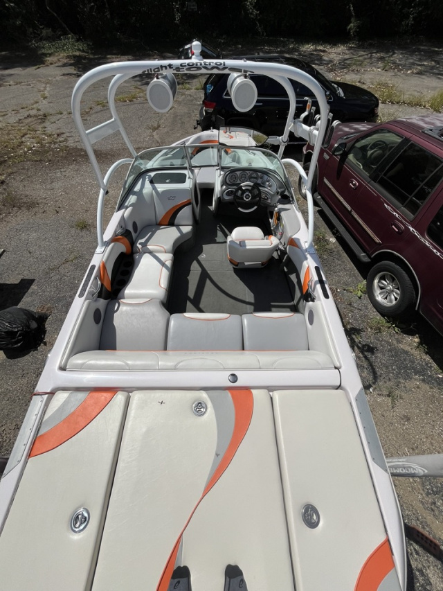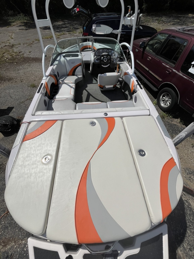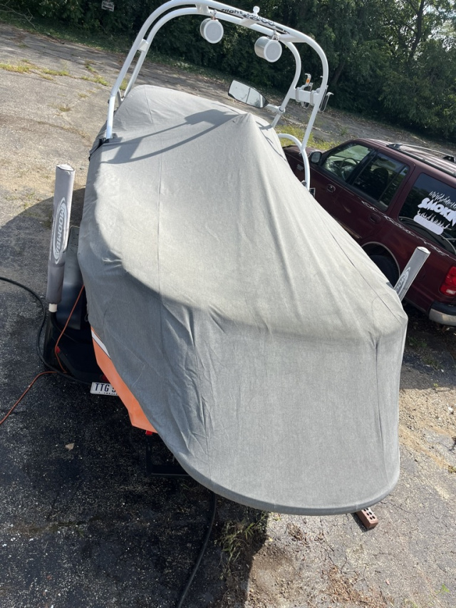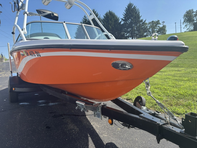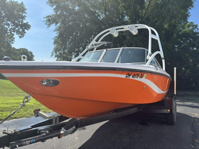 Two rear 1000 lb sacks hard plumed. Quality drawstring Cover from Smitty's Indy Marine. Trailer: Ram-lin, repainted with a minor dent in fender. Signs of rust on wheel hub. Tires are 2016 with little wear. Towed in and out once a year. Brakes may need work. I am the 3rd owner, 2016 came out of Illinois. This is my third ski boat I have owned and serviced continuously over 35 years. Pre 2016 stereo with amps, may be original receiver, it works, with newer sub and bluetooth. Driver side Stereo remote does not work. It is due for an Oil Change and Impeller.
