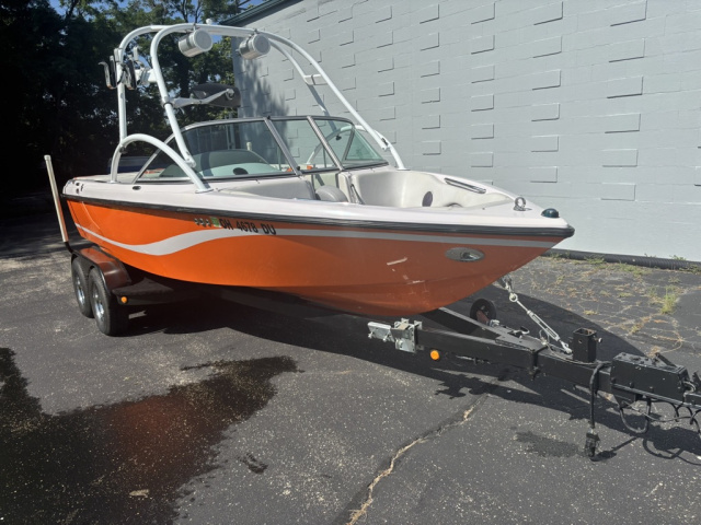 2004 Nautique Super Air 210 Team Edition Wakeboard boat powered by a 5.7L V8 330 hp MPI PCM ‘Excalibur’ engine with V-Drive and only 497 hours of FRESHWATER use. Heater, perfect pass, Center tank and two fat sacks hard plumed. Front Bow sack with external pump, rarely used, we wake boarded. Many hours at Idle doing a pleasure lap around Lake Lakengren, Eaton Ohio. Sold Lakehouse, Boat is in Dayton. Runs great. Everything is operation except fuel gauge and driver side stereo remote. Stored in garage or on covered boatlift in the summer.