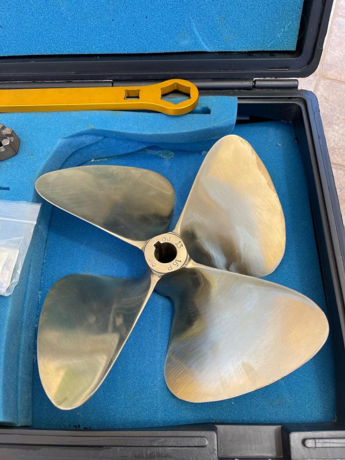 This prop is off my '99 Air Nautique. It is in excellent condition, never used after being cleaned up by Hill Propellers in Santa Ana, CA. Comes with an OJ Just in Case hard case. The case includes; prop wrench, prop puller, nut w/cotter pin and a keystock.