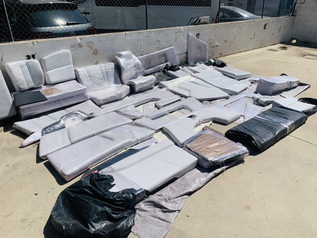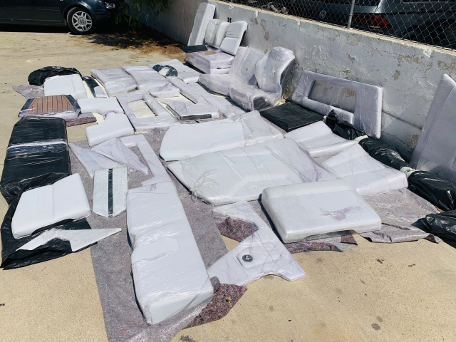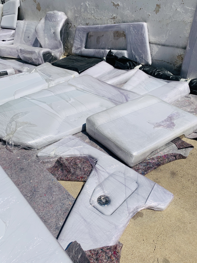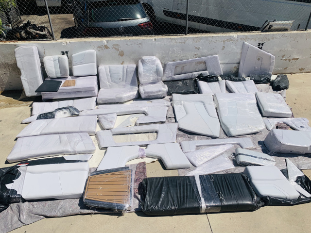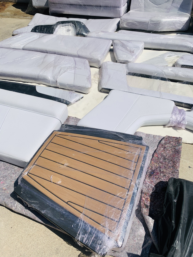 Inclusive of helm seats, side panels, cushions and seat backs. Entire package.