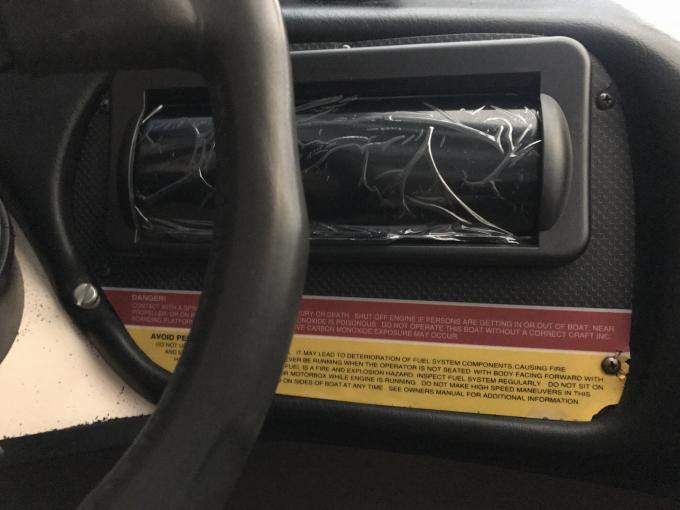 I needed that same panel for my 1998 Ski Nautique restoration. I ended up using some custom panels that a buddy at the Nautique factory had made to closely resemble the originals. I eliminated my stereo head unit, and used a hidden Roswell Cybox directly-connected to an amp to play music.