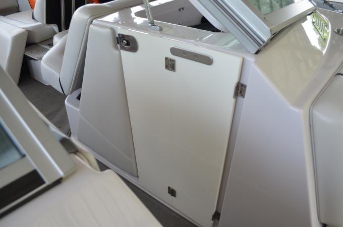 We just got this boat this year. I think I am going to look at it because the prior owner had it removed for a while and when we have a high wind it opens up because the hinges are set to collapse. I/E wind pushes it back to the mount point. But anyway here ya go.
