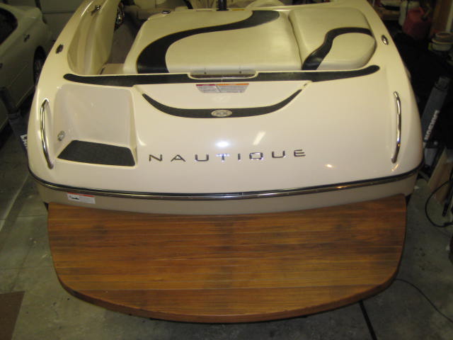I accidentally found a teak platform on an obscure marine salvage web site. This guy has skids of CC platforms for salvage prices. My 226 had the standard fiberglass with black rubber and it has started tracking black on my feet. I know teak needs care to look good but it makes the boat look much more classy. He had two for the 226 but had many more for the 196, 210, 216 & 220.
