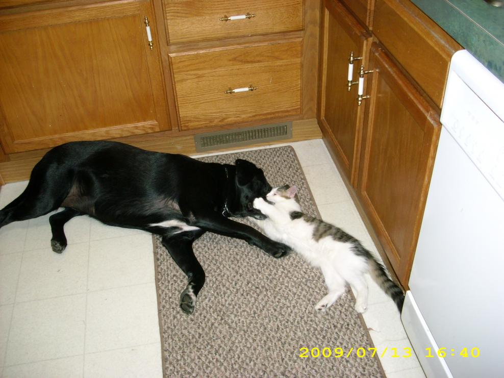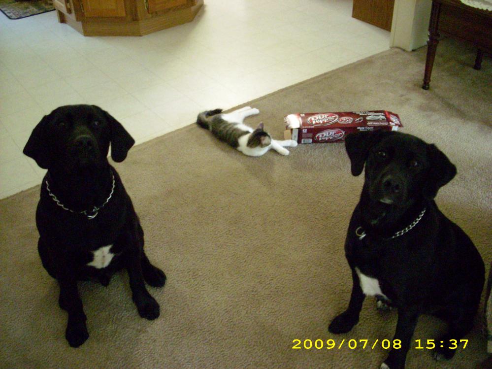 Not my house and not my dogs, the in-laws, we started them at a young age, now the cats RULE both homes. And we have our own dog as well.