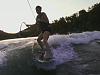 my wife (about 120lbs) successfully surfed our 196 yesterday. 400lbs sac port side, two passengers rear seat corner and one in spotters seat and about 8.5-9 mph. The pic doesnt do the wake justice. Its no SAN but it was pretty decent. It worked for her! She did eventually ride ropeless for about 15 seconds. Our first time trying!