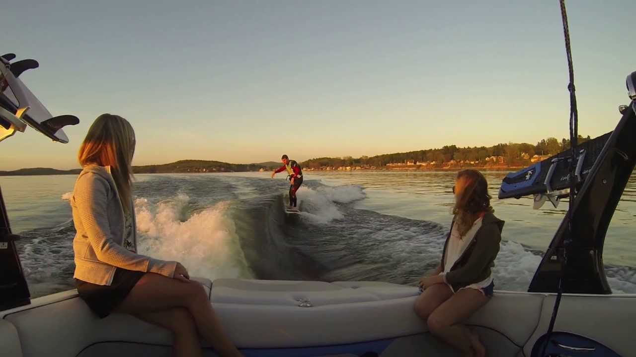 Boat is my buddies - 2012 Supreme V226 - http://www.skisupreme.com/models/v226.html 1,100lbs in rear port locker, 400 in under Port seats 4people (2 guys, 2 girls) in boat, starboard and mid ship factory tanks full, full tank of gas 48 gals.