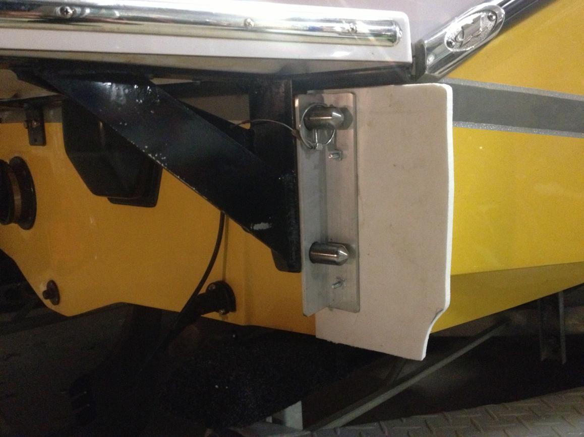 The plan is to make permanent mounted tabs for both sides that will manually slide out depending on which side you want to surf. Those pics helped a lot. My main concern is the little ridge on the transom just inside the platform mounting bracket. I also want to make sure Nautique did not change the location of platform brackets as my goal is to make this bolt directly on without having to drill any holes. So if someone could measure from the edge of the boat straight across to the top and bottom of their platform bracket, that will confirm if everything is the same as my 97. Thanks.