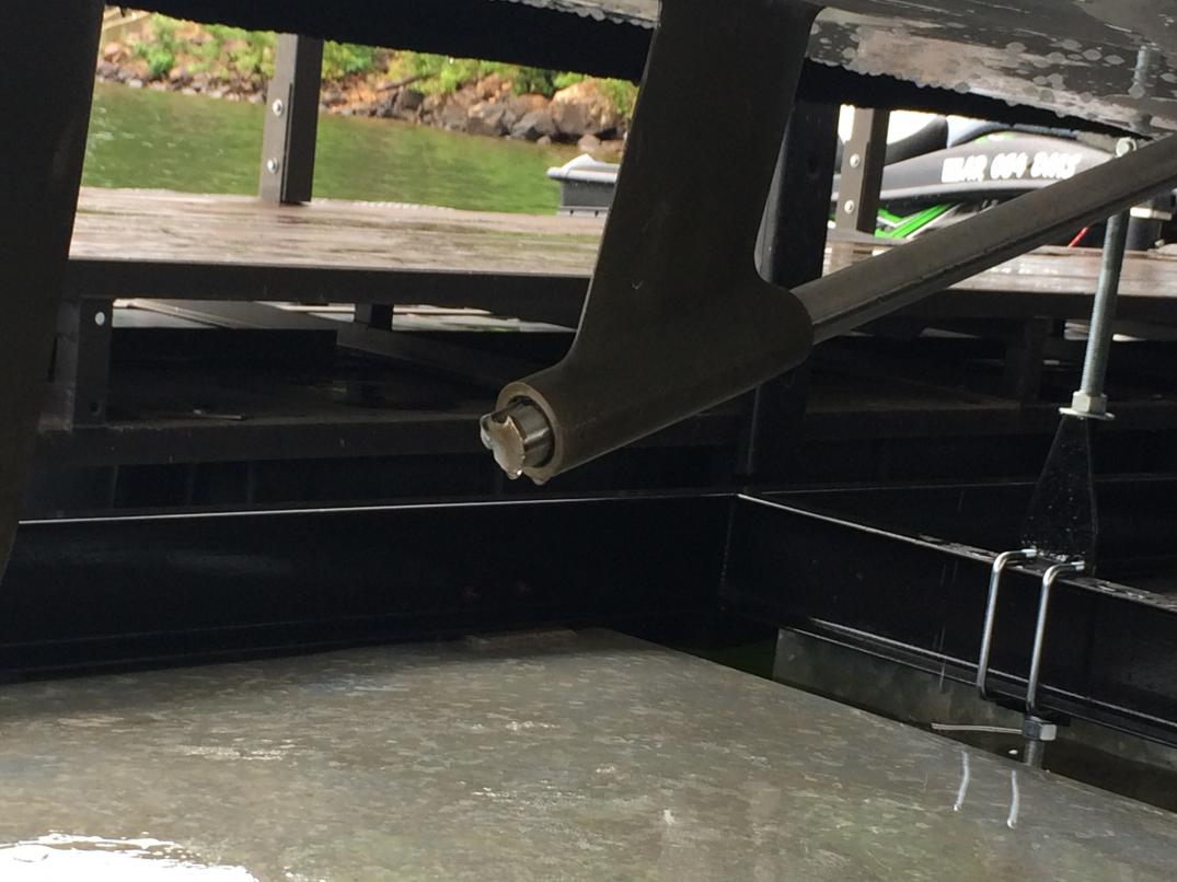 This happened yesterday after about 5-10 minutes of driving 23mph while pulling a tube. All sudden a bad vibration started to happen so I pulled throttle back. Applied throttle again and it was still there. Idled into dock and when I was positioning boat into slip I put into reverse a couple times. On the second time I felt a slight thump and lost all propulsion. Raised boat and this is what I saw.