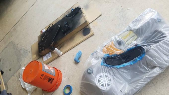 Sand/prep, plastic adhesion promoter, paint, clear. (Cans)???