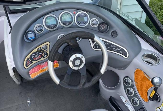 That boat clearly had a tower at one point, too. Looks like they just filled the holes with clear silicone or something. I bet this is a flood boat, where it got crushed into the roof of a boathouse (breaking the windshield and tower) and sunk.