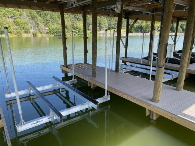 Still lots to do on the build but had to put the boats on the lifts. Happy moment!