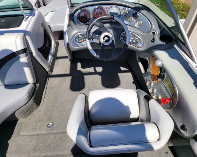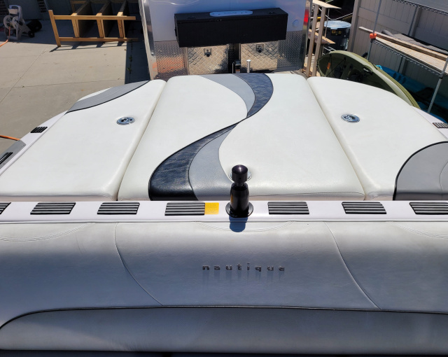 - The upholstery and carpet is in good condition for this age, a couple small/minor stains but no major cracks or rips. The 3 engine cover panels were re-upholstered with new marine vinyl in 2016.