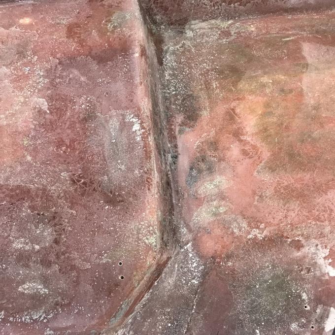 Ran into some tedious cleanup of the bow and a few other areas on the boat where I had to level uneven areas mostly in the bow in order to get semi close to a flat surface so that the gelcoat will layout flat and smooth and the sea deck will have a flat surface to adhere to. Instead of building up with bondo I went ahead and fiberglassed wth CSM to build up all the uneven areas and then sanded to get it all to blend in.