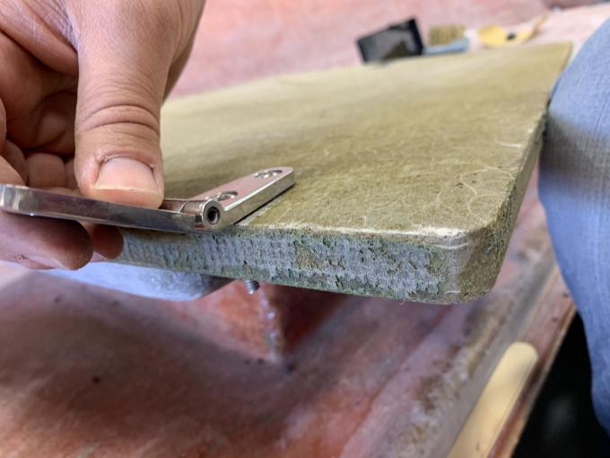 Some small touches that will never be noticed but I think are nice. On the belly hatch the hinges were drilled all the way through and had a nylock nut on the bottom side holding it together. For the new hatch since it will be gelcoated on the bottom I thought it nicer to use threaded inserts so the bottom will not have any nylock nuts showing. Working on securing the fuel tank hatch to the hull without using any screws that would show in the sea deck.
