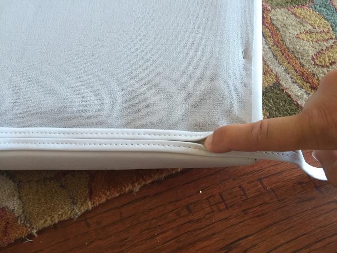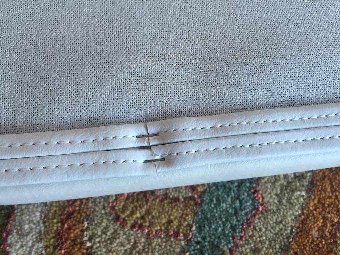 Now the hidem. I find a straight edge to start on. The main thing here is when making sharpe corners you'll need to cut a wedge out to prevent big wrinkles. I try not to cut all the way through and butt to separate 45s together instead I just cut the inside half out and that's usually enough to allow it to make the corner without wrinkling too bad. Anywhere I have to cut it and butt it together I put a staple across (another factory tip picked up during removal)