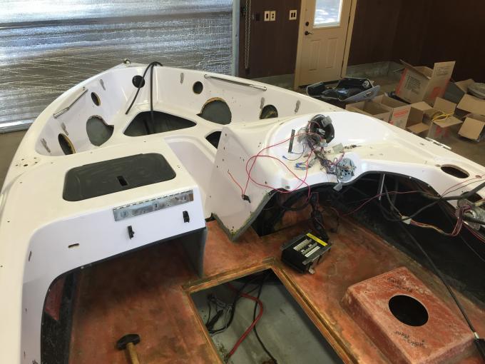 Thanks Britt for confirming with them the oil amount. Made some more progress on stripping the boat down in prep for gel coat work. Now I have a super bass nautique (looks like a bass boat to me now). Still need to remove the fuel fillers, grab handles, dock cleats then can get busy sanding, compounding and filling old screw holes that won't be used anymore.