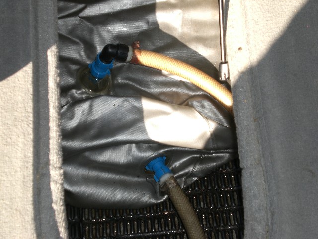 Here is how it is set up now. This fat sac is only 375. The top drain sometimes pops my locker open when full. I just tied this on to the factory pumps. That year its just one switch, fill and empty. It has two pumps that fill and one that emptys. I have a hard time draining the locker sac. It has no problems filling though.