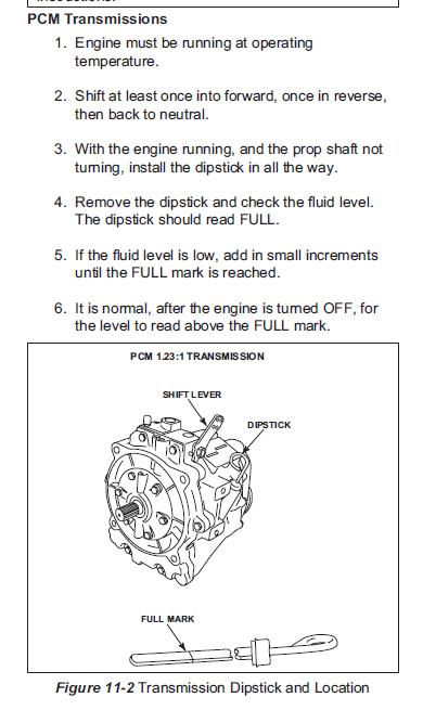Also, I'm confused about the proper procedure for checking the level of my PCM transmission on my '94 Sport Nautique. The manual shows the dipstick resting on the 1st o-ring when checking cold. It doesn't, however, say if the dipstick should be fully inserted when the engine's hot.