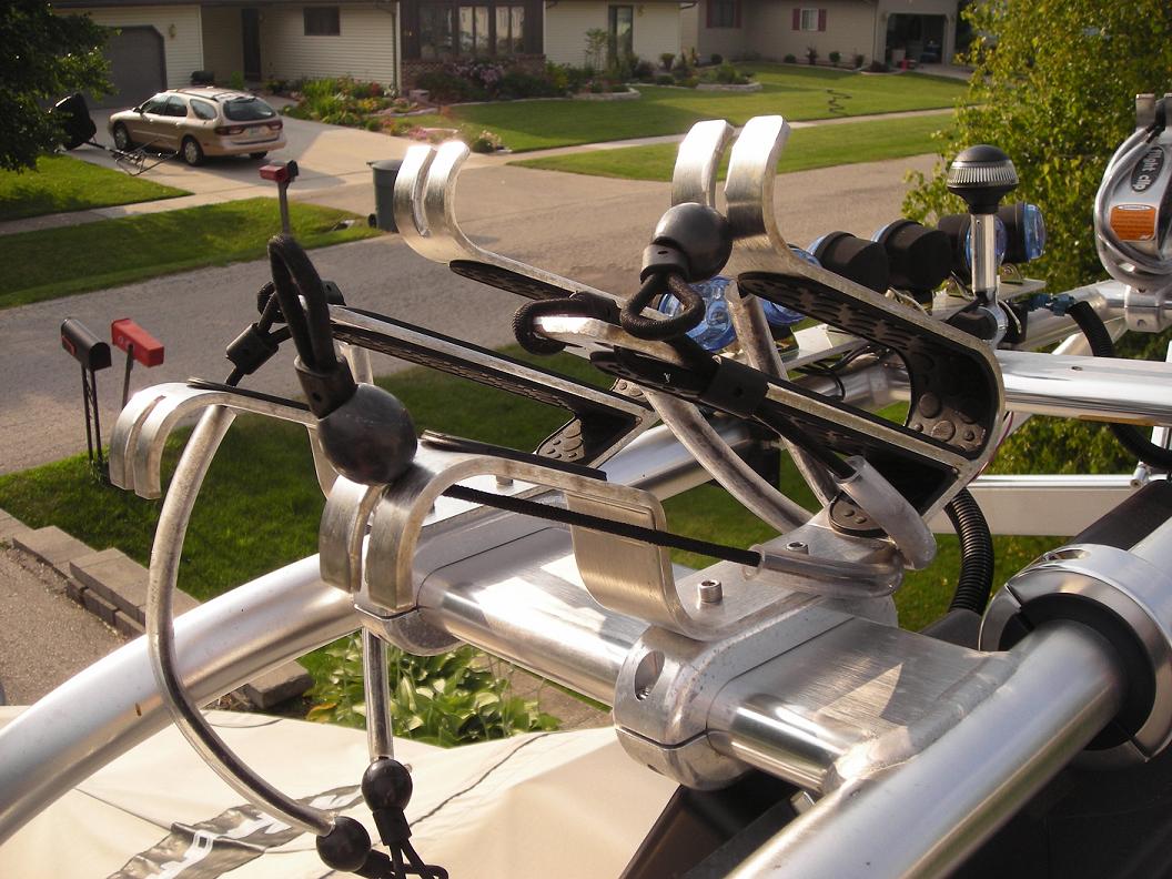 Our 2001 Air Nautique has the flight clips mounted on the top of the FCT. Has anyone ever moved them to the side of the tower? It makes more sense to have them there. First you have to climb the tower to slip them in and then they drip all over the driver and spotter. I was thinking of purchasing a couple of 1 7/8" split collars and try to drill and tap them to the flight clips. Has anyone tried this?