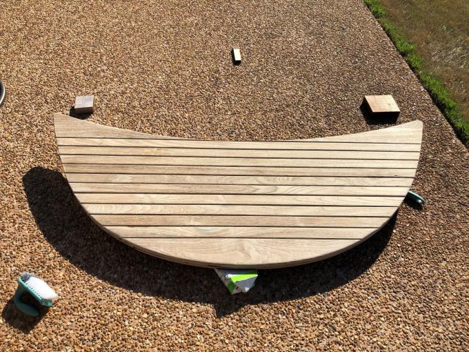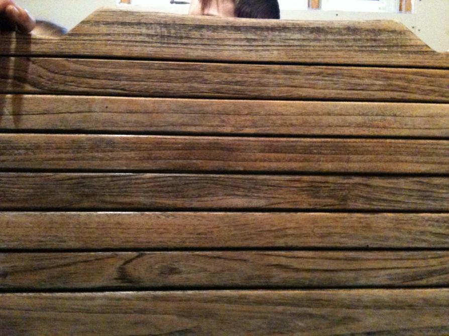 I have seen many discussions on the best way to refinish your teak platform. I have a 2002 SANTE and got a beautiful finish on my platform. Here is what I did