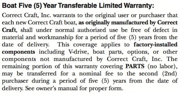 Is this true? Has anyone had their labor covered by Correct Craft or dealer?