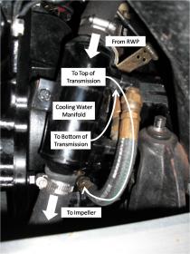 The "cooling water manifold" is more commonly called a transmission oil cooler.