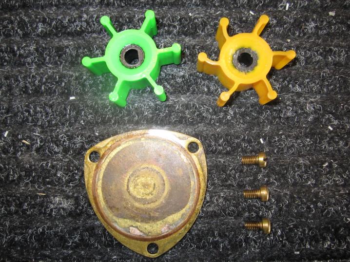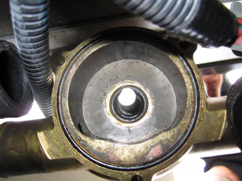 I believe they are Jabsco, if so see the pics below. There are three brass screws that hold the bottom plate on, but be careful not to drop the screws or the large o-ring. Once off, use a paint can top remover or carefully use a flat head screwdriver to pry it off the spindle. One hint is to disconnect the inlets and outlets for all the pumps and move the hoses out of the way, it make things easier to work on. All three of mine were changed in about 30 minsGone - 2008 Air Nautique SV-211 Team Ed - Death by Fire